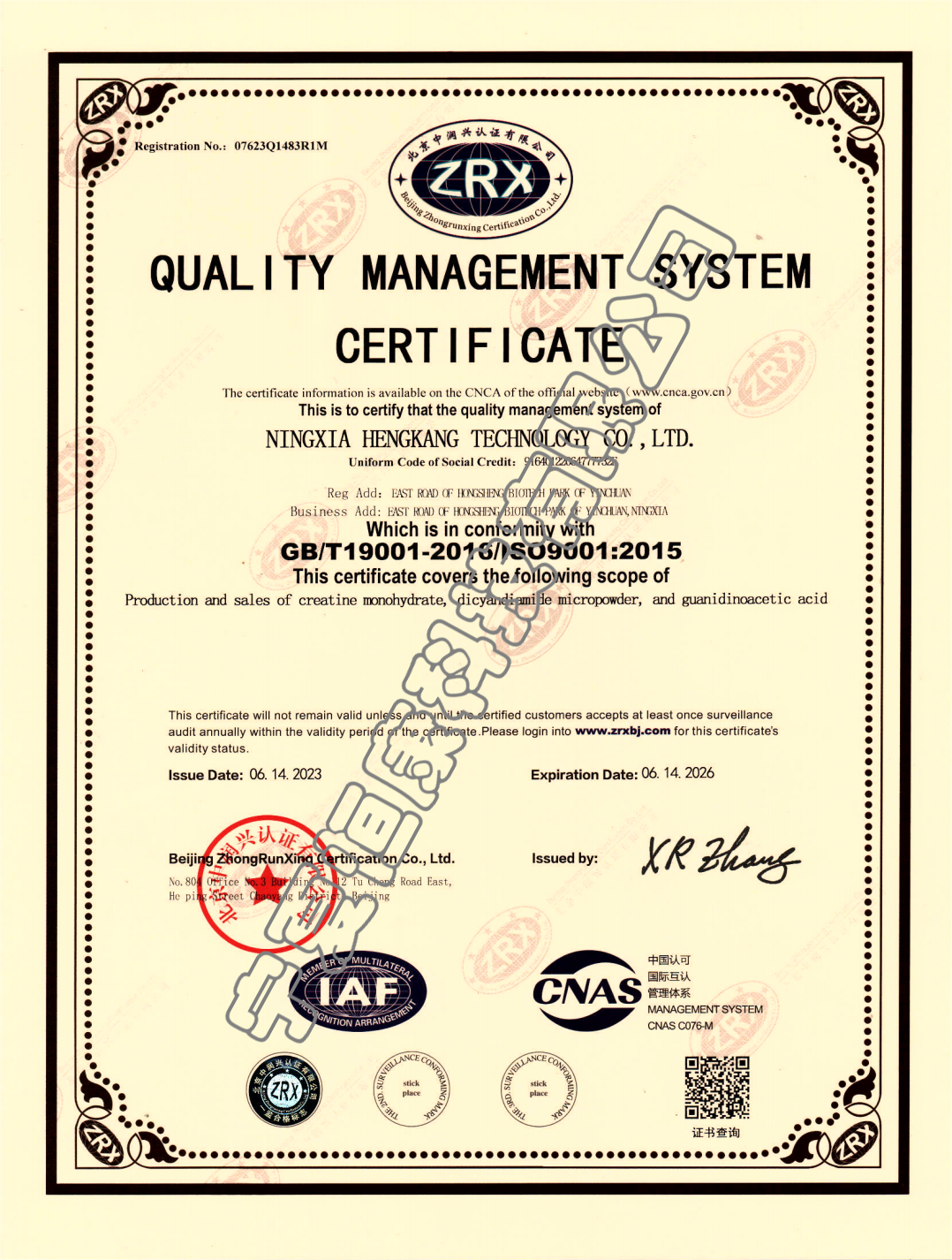 质量管理体系认证证书(英文)